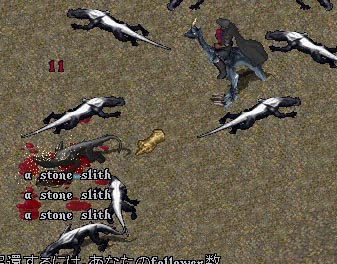 ガーゴイルに敵対するモンスターを倒すとガーゴイル族への謙譲とみなされて女王からの忠誠度が上がると言う仕組み。