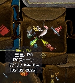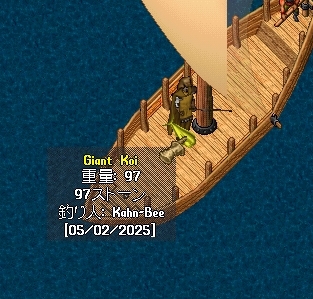 鯉を釣り上げることに成功。日付が日本時間とずれてるのは多分UO内のカレンダーがアメリカの西海岸か東海岸の時間なんでしょう。