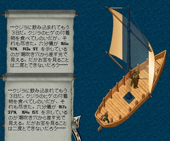 大体のイメージで動けば陸地には行けるし基点を目指せばブリテインにはたどり着きます。大体その前にどこかしらの陸地に当たりますけど。