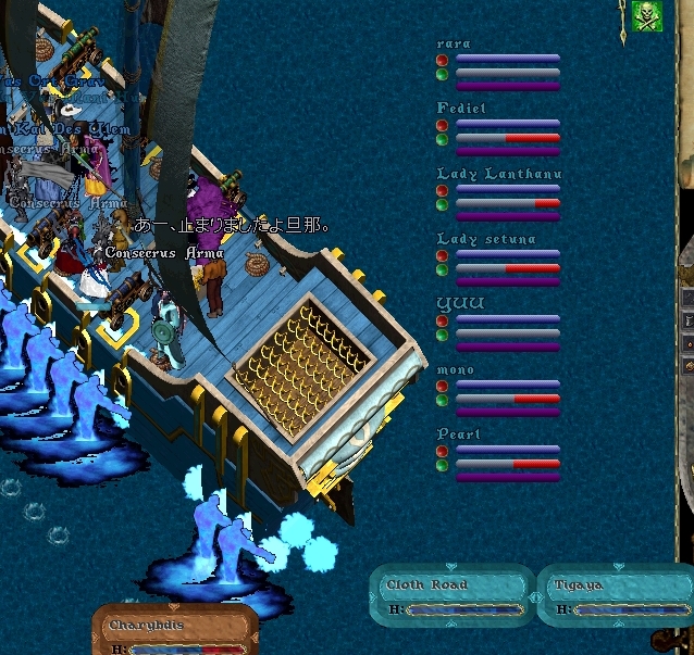 ってことでここは包帯戦士らしく甲板の上を細かく動きながら体力減ってる人、特に操船に集中しなくちゃいけない人には