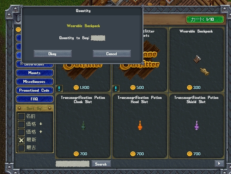 そうそう、最近UOが面白くてゲーム内有料アイテムを買うことにしました。