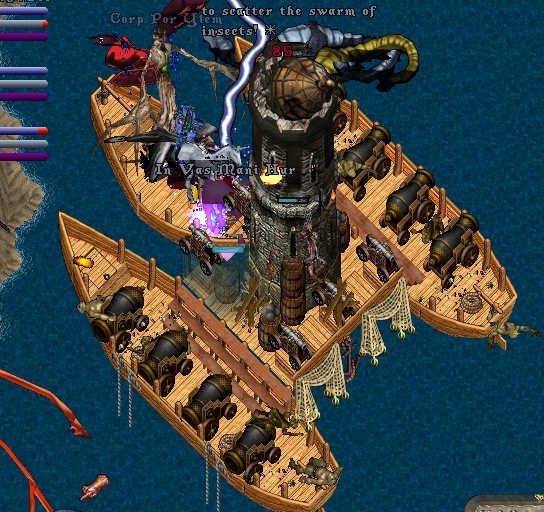 オーク船とかの砲撃を受けまくったりしてると沈没させられるって話でそれが今まさにこの状態。