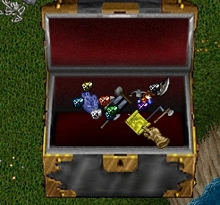中身はさらなる上のL3の地図、、お金5万gpほどに青インゴット100、宝石大体9種15個ずつくらい、盾刻印ツール、他マジックなど。