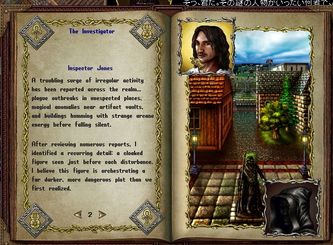 警察組織的な所に行ってほしいとのことだ。ここで前話をしたときは英文だったし突然伝承の書のページ貰ったりで