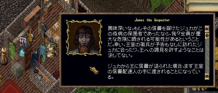 前回も出てきたこのウインドウで会話が始まります、なんでも王の行先を探るためにまずはブリテインの街中にある