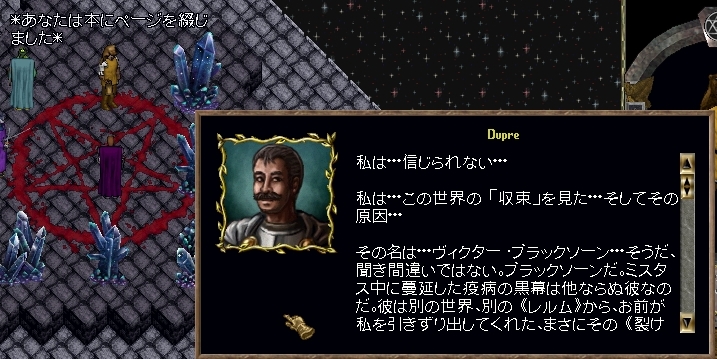 そうその名はデュプレ(dupre)、前回あたり出てきたエセリアル界にいた人にしてUOで古くから名前の出てくる人です。