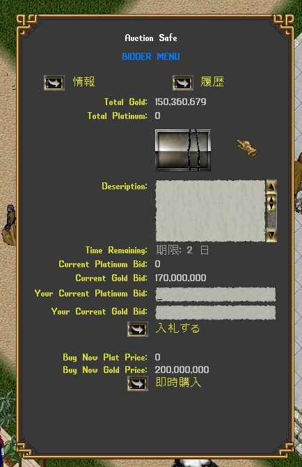 内装アイテムであるオークションセットみたいなのを使うとこういう風に入札できるシステムになってます。