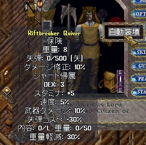 そして無事転車が完了したのがこちら。矢筒のプロパティとマントの見た目を兼ね備えたアイテムになりました。