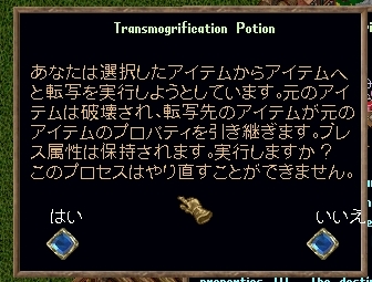 それらを転写ポーションを使った時に出てくる子のウインドウから、それぞれアイテムを指定を選んで変化したカーソルで選びます。