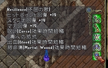 不屈の歌は自然回復力が+19、つまり1秒に大体2自然回復するし呪いや出血、体力回復阻害効果のある致命傷状態の時間短縮してくれるそう。