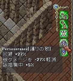 一方で攻撃面では猛攻の歌の命中や武器ダメージへの補正、ボーナスダメージ乱数が上振れするとかなのかな?