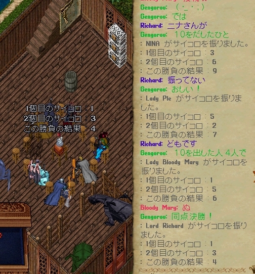 ココでの分配ルールは各自椅子に座って、サイコロ勝負を行い一番高い人から時計回りという事だそう。