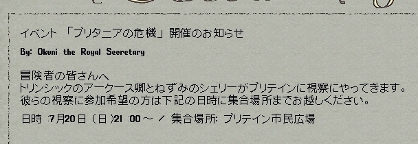 しかし今Izumoブリテインは首長が居ないため別の街の首長に呼びかけ。