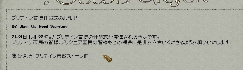 …とまあ、ブリテイン首長の任命式という貴重な場を体験させてもらいました。
