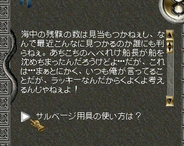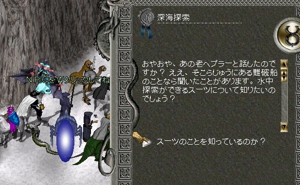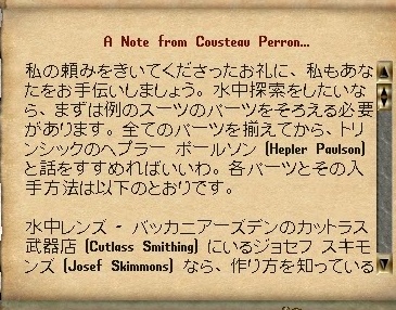 そんなわけでまず最初はバッカニアーズデンにいる水中レンズ担当に話しかけると、