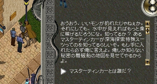 で、用事のある人に話を聞くと割と品がない人ですが話を聞いた後この人から釣り針を買えばいいみたいです。