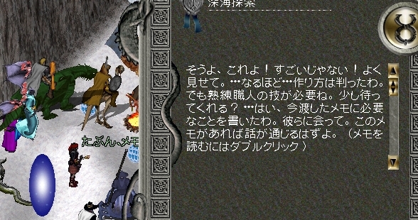 ってことで鱗を渡したら喜んで話をしてくれたんですけども、