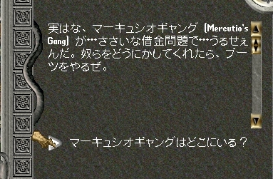 案の定ブーツと引き換えにギャングをやっつけて来いという話に。