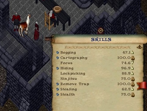 そんなヌマーですがスキルの方向性は固まっていて、鍵とハイドを100に、盗みと物乞いは余剰値でうまく考えてあげようかななんて。