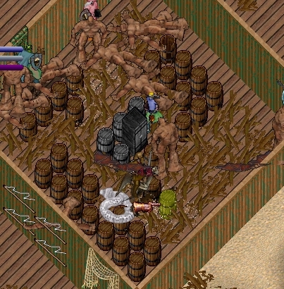 どうやらこの樽、灯台みたいに殴れる対象であるようでWクリックで殴り破壊してしまった様子。