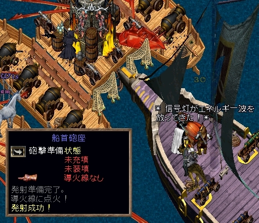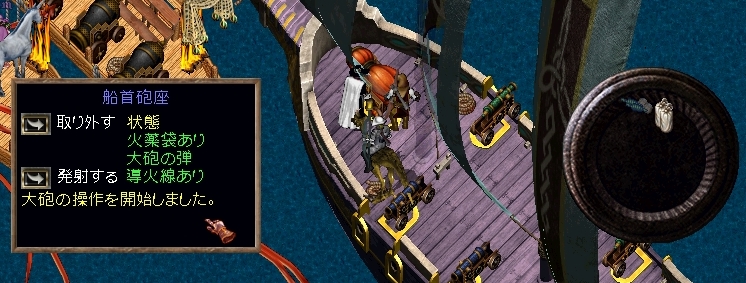 そんな中、Tigayaさんが船首の大砲を撃たせてくれるという事で遠慮なく撃たせてもらうことにしました。