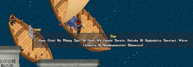 アルファベットの日本語でこの編で掘ってると海賊なり水エレなりに船が沈められるよ!って事らしい。エレメンタルの綴り最後のLがないのもほほえましい。