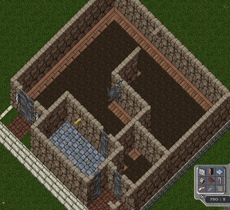 そして暫定的に完成、これをベースに微調整を重ねていきます。左下の部屋が居住スペースで外は掘りと鍛冶。