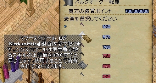ちょっと鍛冶のバルクで貰えるパワスクなんかをどんどんもらったりしています。